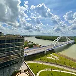 Nachádza sa asi 5-minút jazdy od Rolandovho prameňa, 64 m² byt Danube River Front, Skyscraper Bratislava pozostáva z balkóna a obývacej časti s výhľadom na mesto.
